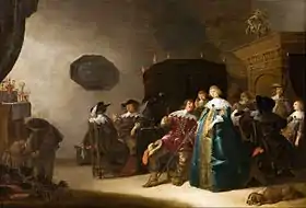 Anthonie Palamedesz., also Antonie Palamedesz, birth name Antonius Stevens[1] (1602 in Leith, Scotland[1] – 27 November 1673 in Amsterdam), was a Dutch portrait and genre painter. He is in particular known for his merry company paintings depicting elegant figures engaged in play, music and conversation as well as guardroom scenes showing soldiers in guardrooms. Like many Dutch painters of his time, he painted portraits and still lifes, including vanitas still lifes. He further painted the staffage in a few views of the interior of churches.[2] He played a major role in the development of genre painting in Delft in the mid 17th century.[3]