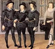 ″The Brothers Anthony, John und William Brown″ by English painter Isaac Oliver, signed with monogram, inscribed and dated 1598, Burleigh House