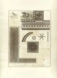 Pit Mead Roman villa mosaic, illustrations by Catherine Downes, engraved by James Basire and presented to the SAL by Daines Barrington