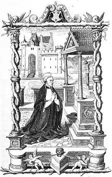 He was made a cardinal in the consistory of 19 December 1539, by Pope Paul III.[6] The King (and no doubt Mme. d'Estampes) had been extremely annoyed when Sanguin had not been named a cardinal in the Consistory of 20 December 1538, as they had expected. He was assigned the Deaconry of Santa Maria in Portico on 15 July 1541, which was temporarily (pro hac vice) promoted to the rank of titular church. His red hat was sent to him in France, and was presented to him by the Papal Legate, Cardinal Alessandro Farnese in a ceremony held in Notre Dame de Paris on Pentecost, 1540.[7] Sanguin first presented himself in Rome for his introduction into the Roman Curia on 20 December 1547, and was received by the Pope on 22 December. He was presented with his ring on 9 January 1548 and granted the right to speak in Consistory.[8]