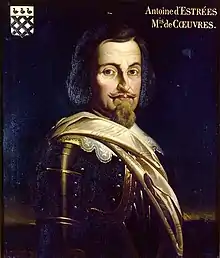 Antoine d'Estrées (1529 – 11 May 1609) was Marquis of Coeuvres, vicomte of Soissons and of Bercy, Knight of the Order of Saint-Esprit in 1578[1] and Knight of the Order of Saint-Michel also in 1578. He was made gentleman of the chamber for Francis, Duke of Anjou, and later was made governor of several territories.[1]