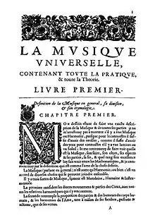 The two mentions that Mersenne made of Cousu in 1636[7] reveal that he was already working on an important musical treatise at that time. This treatise was published more than twenty years later, in 1658, by Robert III Ballard, but the author's death interrupted his publication.