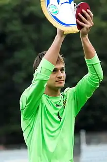 Anton Olehovych Kanibolotskyi (Ukrainian: Антон Олегович Каніболоцький; born 16 May 1988) is a Ukrainian goalkeeper . He recently played for the club Shakhtar Donetsk, where he was the third-choice goalkeeper of the club. He started his career at Dnipro Dnipropetrovsk.