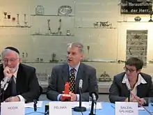 Anton Pelinka at a news-conference in the Jewish Museum Vienna. Also present from the left is Dr. Ingo Zechner, the former general-secretary Avshalom Hodik of the Jewish Community, Brigitte Bailer-Galanda of the Documentation Centre of Austrian Resistance, and the historian Bertrand Perz. The occasion was the founding of a Vienna Wiesenthal Institute for Holocaust Studies (VWI).
