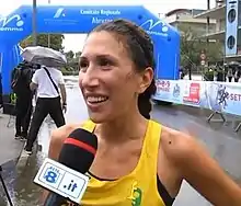 Antonella Palmisano (born 6 August 1991) is an Italian racewalker, 3rd at 2017 World Championships, 4th at 2016 Summer Olympics and 5th at 2015 World Championships in 20 km race walk and 1st in the same event at the 2020 Summer Olympics.