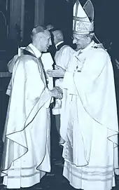 Baraniak later accompanied Cardinal Wyszyński to another "ad limina apostolorum" visit to the pope that was held on 14 May 1957 just a couple of weeks before his archiepiscopal elevation.[4] Pius XII appointed Baraniak as the newest Archbishop of Poznań on 30 May 1957 and the new archbishop was enthroned in his new episcopal see on 2 July 1957 while later receiving the Pallium on 8 September 1958 from Bolesław Filipiak.[2] He became fluent in Italian and attended all sessions of the Second Vatican Council from 1962 to 1965. In the first session of the Council he was elected as a member of the Oriental Commission and presented a proposal for the revision of the liturgical calendar while he contributed to the drafting of Dignitatis humanae. Baraniak later participated in the 1971 Synod of Bishops and attended the 1971 beatification of Maximilian Kolbe and the 1975 beatification of Maria Theresa Ledóchowska.