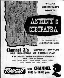 Antony and Cleopatra is a 1959 Australian television play based on the play by William Shakespeare.[4]