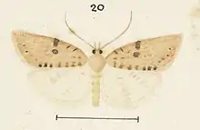 The wingspan is about 18–19 mm for both males and females. The forewings are ochreous whitish, sprinkled with light brownish. In males the forewings are posteriorly tinged with light brownish between the veins. The hindwings are whitish. There is a distinct variety, named semicocta, which has whitish-ochreous forewings, on the costal half suffused with brownish ochreous. The hindwings of this variety are also whitish.[2]