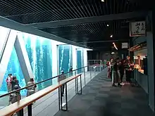 The centerpiece tank, "The Sea of tide", holds 2,050 cubic meters (540,000 U.S. gal) and contains a triangular tunnel that separates two tanks with different water temperatures (the two currents).[1][2]
