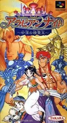 Arabian Nights: Sabaku no Seirei-ō (アラビアンナイト 〜砂漠の精霊王〜, lit. "Arabian Nights: Spirit King of the Desert")[4][5] is a 1996 Japan-exclusive Role-playing video game developed by Pandora Box and published by Takara for the Super Famicom.