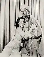 Maria Montez as Sherazade and Jon Hall as Haroun-Al-Rashid, publicity photograph for the film.