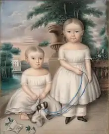 Two portraits by Vail, both of children, are currently in the collection of the Metropolitan Museum of Art.[1][2] A pair of portraits, once thought to be of the artist and her son, belong to the Cincinnati Art Museum.[4] "Portrait of a Woman" dates to approximately 1840, and includes typical black garments of the time with a delicate lace collar, pinned by a brooch with its own miniature painting.[5] "Portrait of a Young Man" dates to the same time frame.[6] Another portrait, dated to 1840, is owned by the Yale University Art Gallery.[7] Few of Vail's works have been published; her style has been described as "idiosyncratic" and her figures "unusually constructed", and she favored a matte finish on her pieces, unlike other painters of her generation.[4]