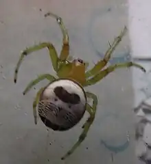 Araneus mitificus, commonly known as the kidney garden spider or pale orb weaver is a species of orb-weaver spider found in South, East, and Southeast Asia.