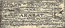 Ararat, established as a city of refuge for the Jewish nation, was founded in 1825 by New York politician and playwright Mordecai Manuel Noah, who purchased most of Grand Island, a 27-square-mile (70 km2) island near Buffalo, New York.[1] It failed to be a Jewish city.[2]