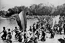 A couple months into the Second Italo-Ethiopian War on 9 December 1935, Ethiopian Minister of War Mulugeta Yeggazu ordered all chiefs in the north to undertake "patriotic resistance against the Italians for taking away the independence of Ethiopia".[7] The Patriot movement only emerged in the spring of 1936 after the Battle of Maychew in the Tigray Region as scattered troops of the Army of the Ethiopian Empire resorted to guerrilla tactics against occupying forces.[8] Local civilians joined in and operated independently near their homes. Early activities included stealing war materials, rolling boulders off cliffs at passing convoys, kidnapping messengers, cutting telephone lines, setting fire to administrative offices and fuel and ammunition dumps and killing collaborators.[9]