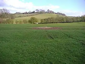 The slopes of Arbury Hill are a drainage divide between three major river catchment areas, with the Nene to the north, east and south, the Cherwell (a tributary of the Thames) to the south-west and the Leam (a tributary of the Severn) to the west and north-west.[2] There are fine views with Rugby and Coventry visible to the northwest and Northampton to the east. The River Nene rises in a swampy hollow on the northwestern flanks of the hill.[3]