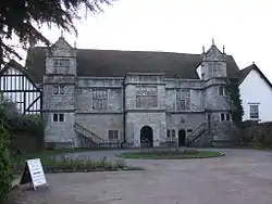 The Archbishop's Palace is a Grade I listed historic 14th-century and 16th-century building on the east bank of the River Medway in Maidstone, Kent. Originally a home from home for travelling archbishops from Canterbury, the building has been most recently used as a venue for wedding services.[1] The former tithe barn for the palace (today severed from the palace by the A229), now serves as the Tyrwhitt-Drake Museum of Carriages.