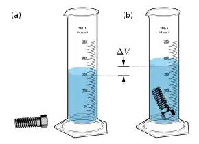 The story of the golden crown does not appear anywhere in Archimedes' known works. The practicality of the method described has been called into question due to the extreme accuracy that would be required to measure water displacement.[32] Archimedes may have instead sought a solution that applied the hydrostatics principle known as Archimedes' principle, found in his treatise On Floating Bodies: a body immersed in a fluid experiences a buoyant force equal to the weight of the fluid it displaces.[33] Using this principle, it would have been possible to compare the density of the crown to that of pure gold by balancing it on a scale with a pure gold reference sample of the same weight, then immersing the apparatus in water. The difference in density between the two samples would cause the scale to tip accordingly.[11] Galileo Galilei, who invented a hydrostatic balance in 1586 inspired by Archimedes' work, considered it "probable that this method is the same that Archimedes followed, since, besides being very accurate, it is based on demonstrations found by Archimedes himself."[34][35]