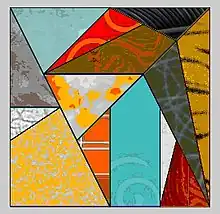 Also known as Loculus of Archimedes or Archimedes' Box,[81] this is a dissection puzzle similar to a Tangram, and the treatise describing it was found in more complete form in the Archimedes Palimpsest. Archimedes calculates the areas of the 14 pieces which can be assembled to form a square. Reviel Netz of Stanford University argued in 2003 that Archimedes was attempting to determine how many ways the pieces could be assembled into the shape of a square. Netz calculates that the pieces can be made into a square 17,152 ways.[82] The number of arrangements is 536 when solutions that are equivalent by rotation and reflection are excluded.[83] The puzzle represents an example of an early problem in combinatorics.