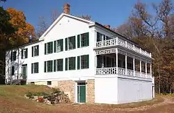 Arcola Mills is a historic house in the unincorporated community of Arcola, Minnesota, United States. Built in 1847, it is considered the third-oldest and largest all-wood-frame house still standing in Minnesota.[2][3] It was the home of brothers Martin and John Mower, who established one of the first sawmills on the St. Croix River and the community around it. The house and the remnants of the nearby mill were listed on the National Register of Historic Places in 1980 as the John and Martin Mower House and Arcola Mill Site for having local significance in the themes of architecture, exploration/settlement, and industry.[4] The property was nominated as an "excellent example" of Greek Revival architecture and for its association with the region's early settlement and lumber industry.[5] The property now operates as a non-profit event and education center.[6]