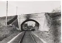 Although the Cambrian main line through Arddleen was opened for service on 1 May 1860, Arddleen station did not come fully into service until 1863. The line was built by the Oswestry and Newtown Railway, then absorbed into the Cambrian Railways, and it became part of the Great Western Railway during the Grouping of 1923. The line then passed to the Western Region of British Railways on nationalisation in 1948. Arddleen was reclassified as a Halt in June 1954 when the original station building, which incorporated a small booking office and waiting room, was replaced by a simple wooden shelter. In the same year the platform may have been rebuilt showing the fancy stone facing on the platform frontage.