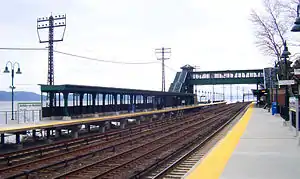 the Tappan Zee Bridge is visible beyond the station.