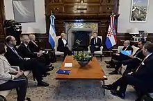 In May 2003, Argentine President Néstor Kirchner Ostoić (of Croatian descent) was elected President of Argentina. In April 2010, the second meeting of the Croatia-Argentina interparliamentary friendship group was held in the Croatian Parliament in Zagreb and attended by Argentine Secretary of Foreign Relations Victorio Taccetti.[10] In October 2017, Croatian Deputy Foreign Minister Zdravka Bušić paid a visit to Argentina to attend the 2nd Political Consultations Meeting between both nations.[11]