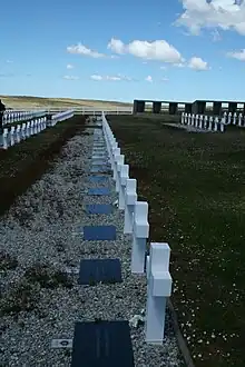 The Argentine Military Cemetery, Spanish: Cementerio de Darwin [2] (Darwin Cemetery), is a military cemetery on East Falkland that holds the remains of 236 Argentine combatants killed during the 1982 Falklands War (Spanish: Guerra de las Malvinas). It is located at Fish Creek to the east of the Darwin Settlement the location of the Battle of Goose Green. There is a replica of the cemetery at Berazategui in Buenos Aires Province, Argentina.[3]