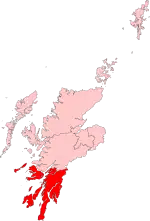 Argyll and Bute shown within the Highlands and Islands electoral region and the region shown within Scotland