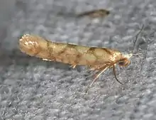 The wingspan is 10–12 mm. The forewings are golden-ochreous. There are five brown spots on the costa and three similar spots on the dorsal margin. There is also a streak of brown on the dorsum at the base and the apex of the wing is lightly reticulated with this colour. The hindwings are light fuscous.[2]