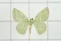 The species' wingspan is about 1 cm.[4] The ground color is greenish. Its caterpillar is a light, dull green color with dorsal and lateral dark suffusions. A subdorsal white line is present. Body rugose (wrinkled) with many small conical spines. Spiracles reddish brown.[5] Host plants are Buchanania species.[6] Pupation occurs in a cocoon made from detritus and flower parts.