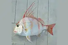 - ↑ Parenti, P. (2019). "An annotated checklist of the fishes of the family Sparidae". FishTaxa. 4 (2): 47–98.