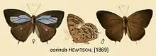 Arhopala corinda is a species of butterfly belonging to the lycaenid family described by William Chapman Hewitson in 1869.[2] It is found in Southeast Asia (Peninsular Malaya, Sumatra, Borneo, Burma, Mergui, Langkawi and the Philippines).[3][4]
