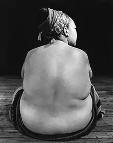 In 2003, she travelled extensively in West Africa, photographing the African wrestlers Adama and Omar in Dakar, the Master of Ceremonies Keneboubo Ogoïre in Mali, and Les Élégantes from Saint Louis in Sénégal. These series inspired the following comment by her friend, the critic Edmund White in an essay about her work : "She is in search of images, not the tourist's snapshots (her eye is not that passive) but rather those pictures that contest her own being or confirm her darkest suspicions or brightest hopes about human nature."[6] The series of African wrestlers is presented later in 2005 at the Bowery Poetry Club in New York.