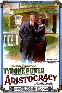 Aristocracy is a lost[1] 1914 American drama silent film directed by Thomas N. Heffron and starring Tyrone Power, Sr., Marguerite Skirvin, Edna Mayo, Arthur Hoops, Ida Waterman and William Roselle. The film is based upon the play of the same name by Bronson Howard. It was released on November 26, 1914, by Paramount Pictures.[2][3]