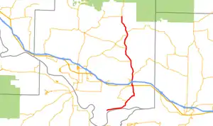 The route begins in southern Pope County at Galla Creek Wildlife Management Area (WMA) near the Arkansas River and runs north through Atkins. The highway has a two-block concurrency with US 64 west in downtown Atkins beginning near the Missouri Pacific Depot, which is listed on the National Register of Historic Places.[3] Highway 105 turns north and runs along the Atkins Commercial Historic District[4] and passes the district headquarters of Atkins Public Schools before an interchange with I-40. The route serves as the eastern terminus of Highway 363 north of I-40 and the western terminus of Highway 247 further north. The highway continues to wind north to serve as the eastern terminus of Highway 164 before an overlap with Highway 124. Highway 105 terminates in Hector at Highway 27.[5]