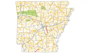 - 1 2 3 4 5 Planning and Research Division (2010). "Arkansas Road Log Database". Arkansas State Highway and Transportation Department. Archived from the original (Database) on 23 June 2011. Retrieved June 9, 2011.