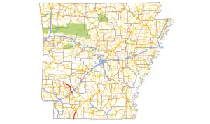 - 1 2 3 Planning and Research Division (2010). "Arkansas Road Log Database". Arkansas State Highway and Transportation Department. Archived from the original (Database) on 23 June 2011. Retrieved June 9, 2011.