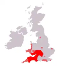 The majority of specimens of Armadillidium depressum are concentrated in southwest Britain, near the English channel, but small populations also occur in various towns scattered throughout England.[2] It is a synanthropic species, living on walls and under stones in towns and old houses.[2][5]