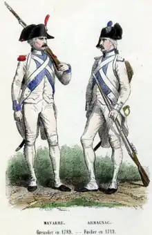 One of the regiments selected to split was the Régiment de Navarre. The 2nd and 4th battalions of that regiment then separated to form the new Régiment d'Armagnac, named after the historic province, today part of the departments of Gers, Landes, and Lot-et-Garonne.[5]