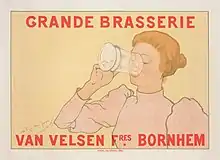 Rassenfosse has often been linked with Felicien Rops as a follower. This is perhaps unfair. One author has said, for example, that while Rops portrayed courtesans, Rassenfosse depicted the daughters of working people. In his intimate nude studies the women have natural elegance, but are not purely objects of desire, as Rops would have made them.[8] However, talking of Rassenfosse's earlier work another writer said that in his advertisements he and others of the time "exploited the image of the sensuous, beautiful young woman ... in a serenely dreamy state ... the stylised embodiment of temptation..."[9]