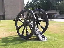 Sculpture Feldzug (1989) by Armando at the entrance of Cemetery Rusthof in Leusden, Netherlands