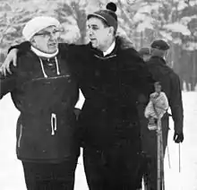 Members of Parliament Armas Leinonen (left) and Mikko Juva after a skiing competition, 1965.