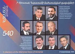 - ↑ "Public Says Oct. 27 Events Is A Crime Against Statehood". Asbarez. 3 November 1999. Retrieved 17 June 2014.