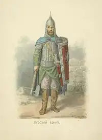 Until the middle of the 15th century, Russian state's armed forces were decentralized and could be assembled as an improvised peasant's militia. While the Grand Prince of Moscow could call up subjects under his direct authority or subjects of other princes. Yet, the Grand Prince didn't have the power to coerce other princes to subordinate their armies to him, with a clear example in the form of the Battle of Kulikovo in 1380, when the princes of Tver, Principality of Nizhny Novgorod-Suzdal and Ryazan principalities refused to assist prince Dmitry Donskoy. The founding event which changed the balance of power and made Grand Prince Vasily II to have near-monopoly over armed forces was the civil war of 1425–1453.[2] In according with the social composition and the fact that there was no general mandatory conscription, the majority of the Tsardom army were dvoryaniye and junior bojary (deti boyarskie). Some of the conscripted had in possession hereditary estate called votchina but most of the cavalrymen received service estate (pomeste) which were in their possession only during the time of the military service. After they finished their service, the estate returned to the state. As the army expanded, other types of soldiers were recruited and were paid with cash and they were led by the dety boyarskie or even boyars.[3] One of the main shortcomings of the local army was its long mobilization process. In addition the lack of systematic military training and weapons at the possession of each soldier. A separate problem was the failure of some landowners to attend the service. At the end of the 16th century, the total number of nobles and Deity Boyarskie did not exceed 25,000 people.