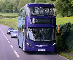 ![]() Arriva Buses Wales Sapphire branded Alexander Dennis Enviro400 City on the A5 in Denbighshire in May 2023 | |