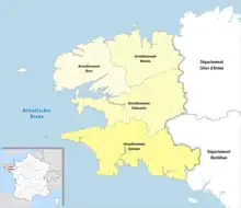 In 1800 the arrondissements of Quimper, Brest, Châteaulin, Morlaix and Quimperlé were established. The arrondissement of Quimperlé was disbanded in 1926.[4]