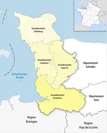 - ↑ "Arrondissement d'Avranches (501)". INSEE. Retrieved 2019-10-01.