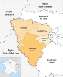 The borders of the arrondissements of Yvelines were modified in January 2017:[7]