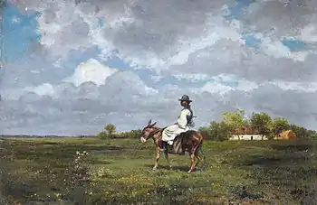 He also made numerous sketching tours to the Great Hungarian Plain and the region surrounding Lake Balaton. After 1875, he paid regular visits to the Szolnok Artists' Colony, as well as to Siófok, where he had a villa built in the early 1890s.[1] He also began exhibiting in the late 1870s, in Vienna, Paris, Munich, and at the National Salon